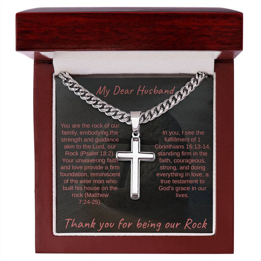 Dear Husband Thanks For Being Our Rock - Artisan Cross Necklace on Cuban Chain