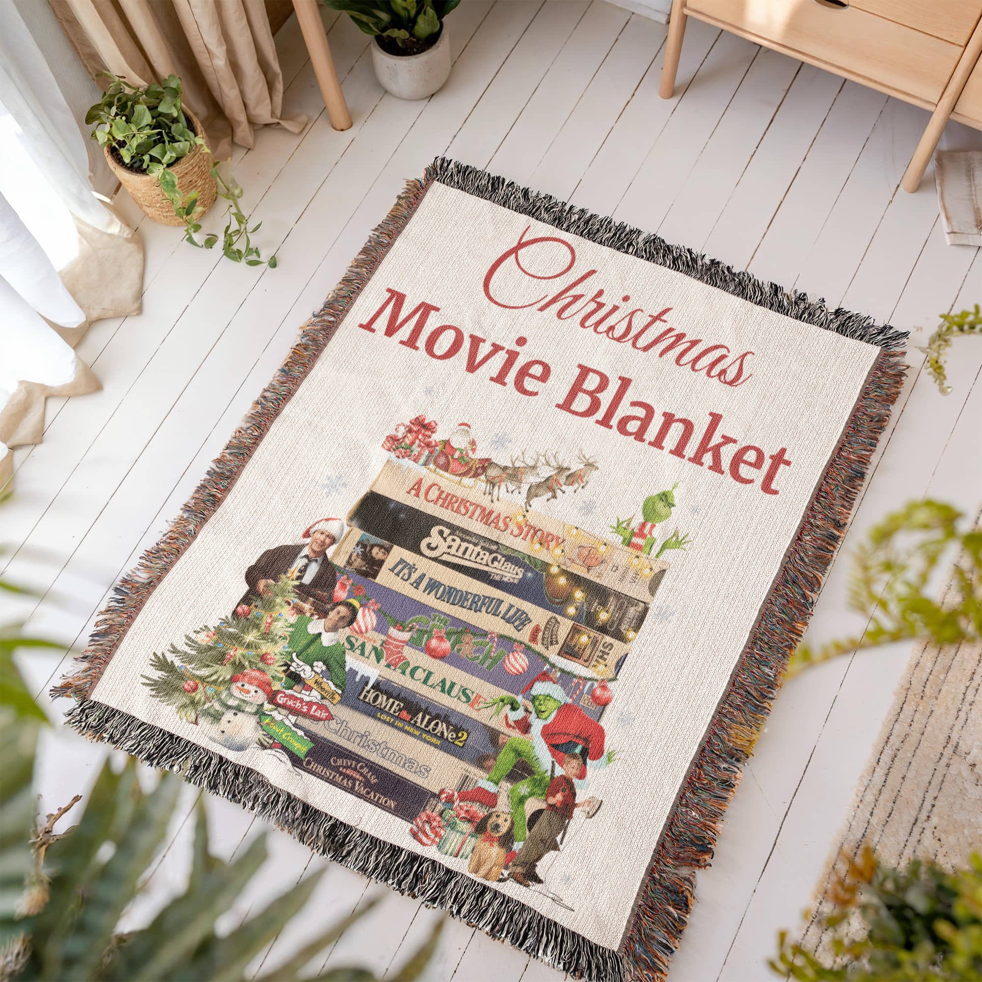 Christmas Movie Blanket — Woven Heirloom Throw Featuring Holiday Film Classics